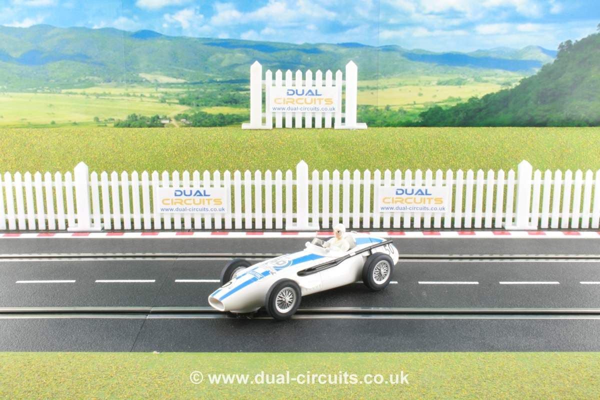 The very first car released by Scalextric in 1957 was the Maserati 250F, then the car to have in Grand Prix racing with Juan Manuel Fangio scoring his legendary final win in one at the 1957 German Grand Prix. In this race he overcome a 48 second deficit in just 22 laps and broke the lap record 10 times in one race. The very first Scalextric set featured two of these cars and perfectly captured both the glamour and beauty of motor racing cars of the period. The 250F was phased out of F1 racing shortly afterwards, but remains one of the most iconic and beautiful F1 cars of all time, a shining testament to the bravery of the early F1 World Championship competitors.